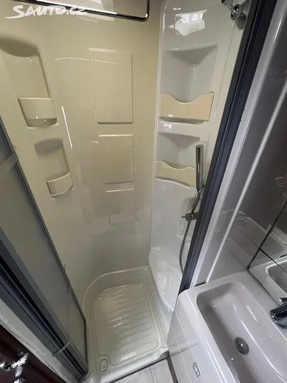 Technický unikát: Vybaveno elektrickými vyrovnávacími nohami (auto se samo vyváží do roviny stisknutím tlačítka) a vzduchovým podvozkem pro komfortní a stabilní jízdu.