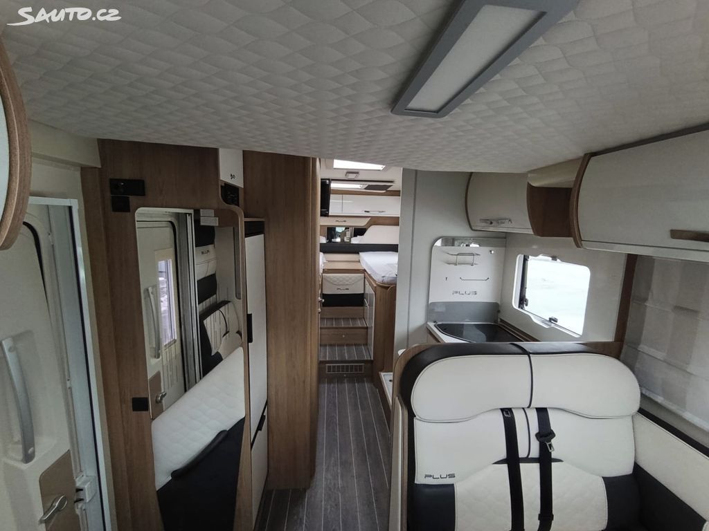 Příslušenství: solární panel 130 W, zpětná kamera s 12" monitorem, markýza 4 m, nosič na 3 kola, skyroof, TV
