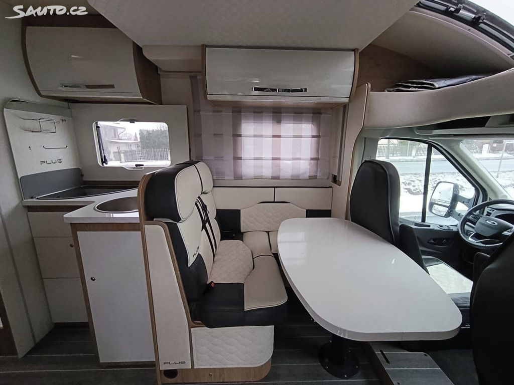 Obytná nástavba: samostatný sprchový kout, WC 17 l, velká lednice 145 l, nádrž na vodu 110 l, odpadní nádrž 120 l, 3× plotýnkový sporák, topení Truma C4, bojler 10 l, Remifront, moskytiéry a žaluzie oken i dveří